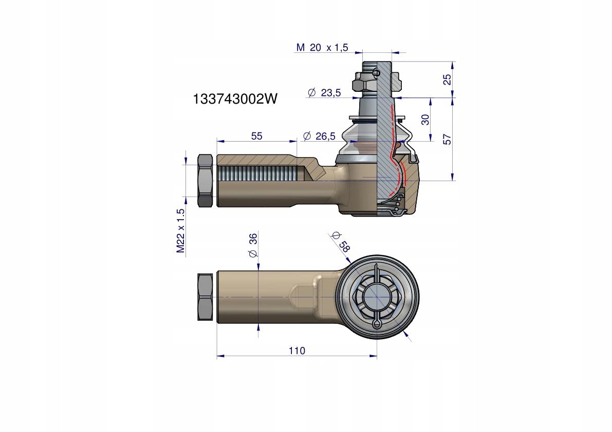 Przegub kierowniczy 110mm- M22x1,5 133743002 WARYŃSKI