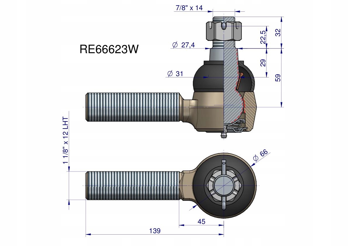 Przegub kierowniczy 139mm - 1 1/8calcalL RE173540 WARYŃSKI, RE66623WPrzegub kierowniczy 139mm - 1 1/8Przegub kierowniczy 139mm - 1 1/8