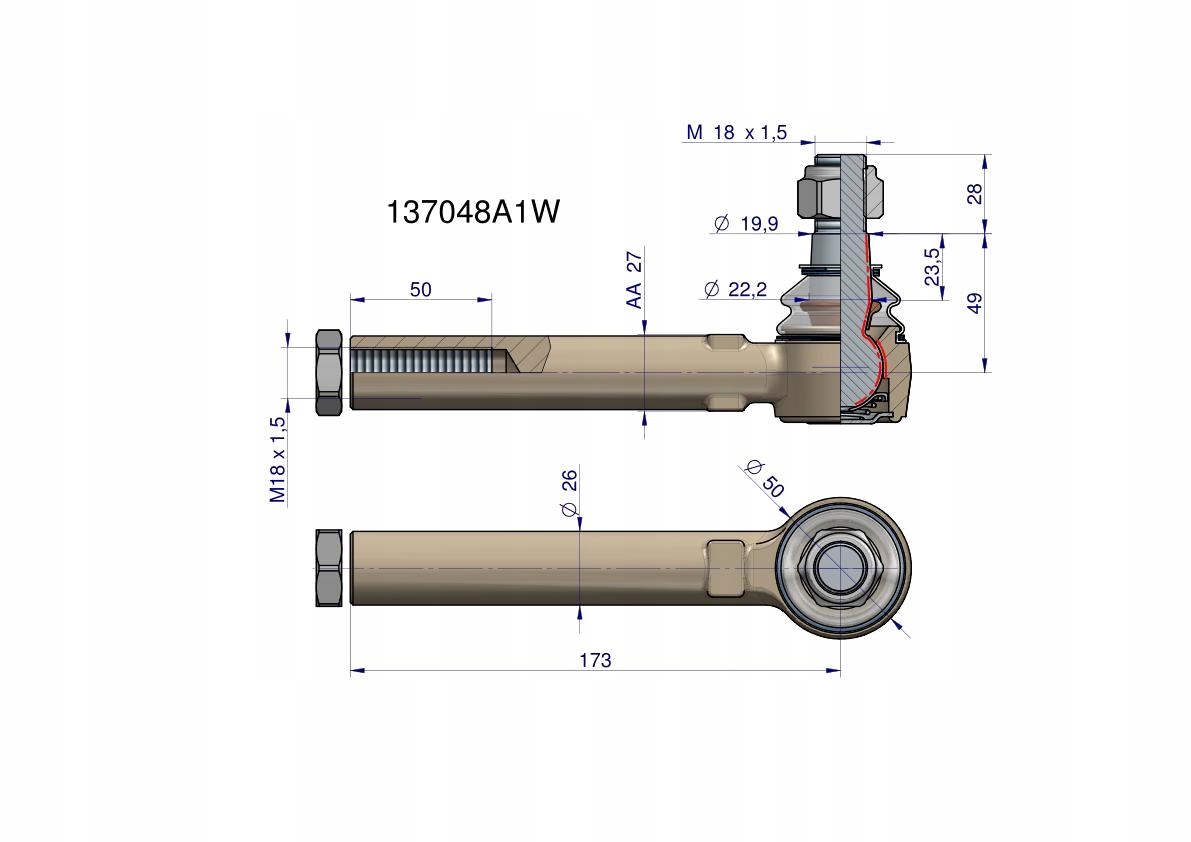Przegub kierowniczy 173mm- M18x1,5 137048A1 WARYŃSKI