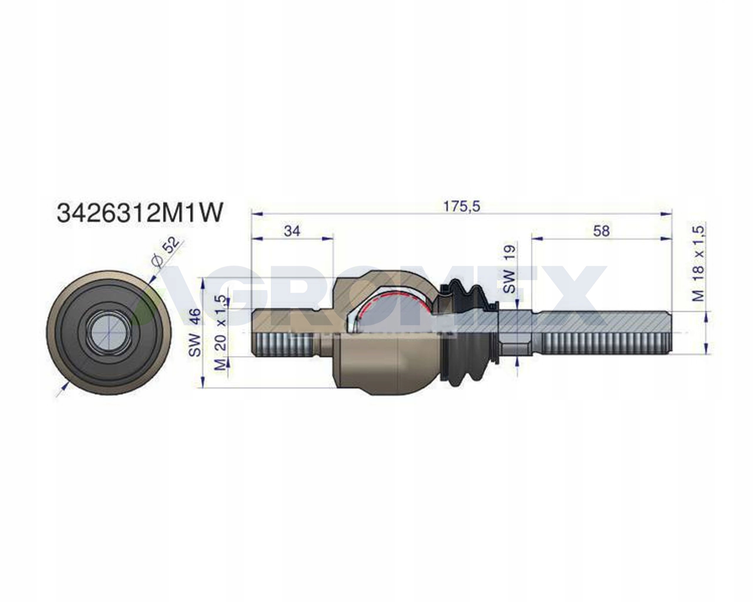 PRZEGUB KIEROWNICZY 175,5MM- M20X1,5; M18X1,5 WARYŃSKI