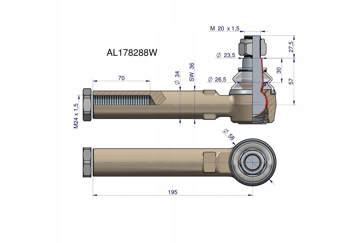 Przegub kierowniczy 195mm- M24x1,5 AL178288 WARYŃSKI