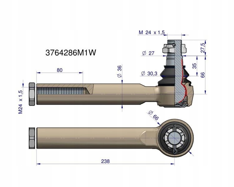Przegub kierowniczy 238mm M24x1.5 WARYŃSKI, 3764286M1WPrzegub kierowniczy 238mm M24x1.5 WARYŃSKIPrzegub kierowniczy 238mm M24x1.5 WARYŃSKIPrzegub kierowniczy 238mm M24x1.5 WARYŃSKIPrzegub kierowniczy 238mm M24x1.5 WARYŃSKI