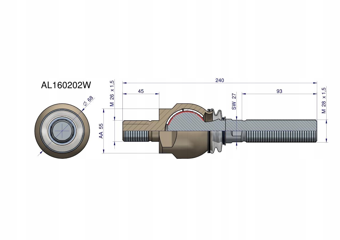 Przegub kierowniczy 240mm- M26x1,5; M28x1,5 AL160202 WARYŃSKI