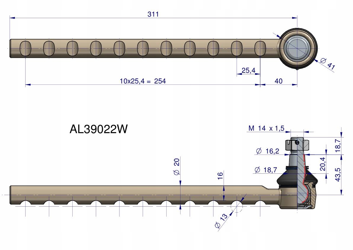 Przegub kierowniczy 311mm AL39022 WARYŃSKI [AL39022W]