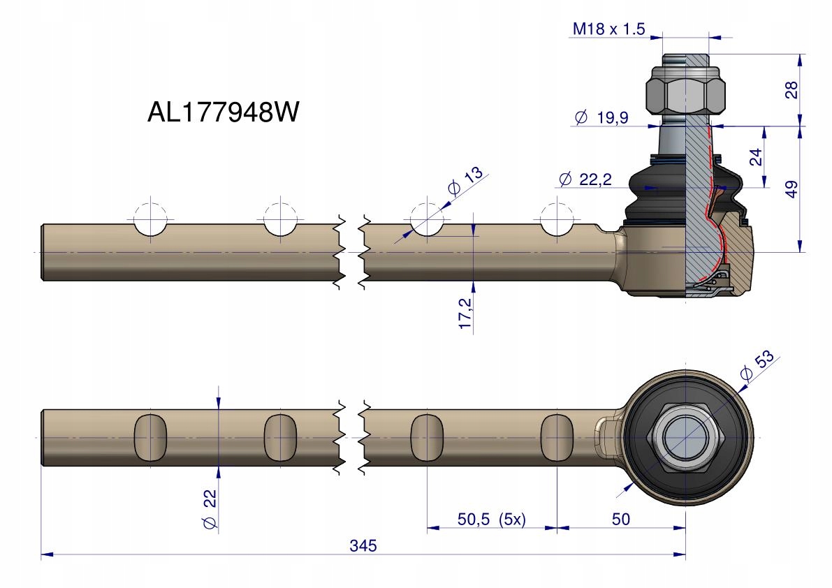 Przegub kierowniczy 345mm AL177948 WARYŃSKI [AL177948W]