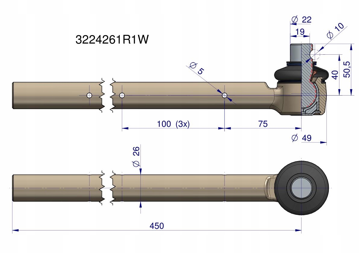 Przegub kierowniczy 4-otwory Case 3224261R1 WARYŃSKI