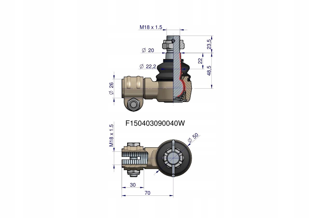 Przegub kierowniczy 70mm- M18x1,5 F150403090040 WARYŃSKI