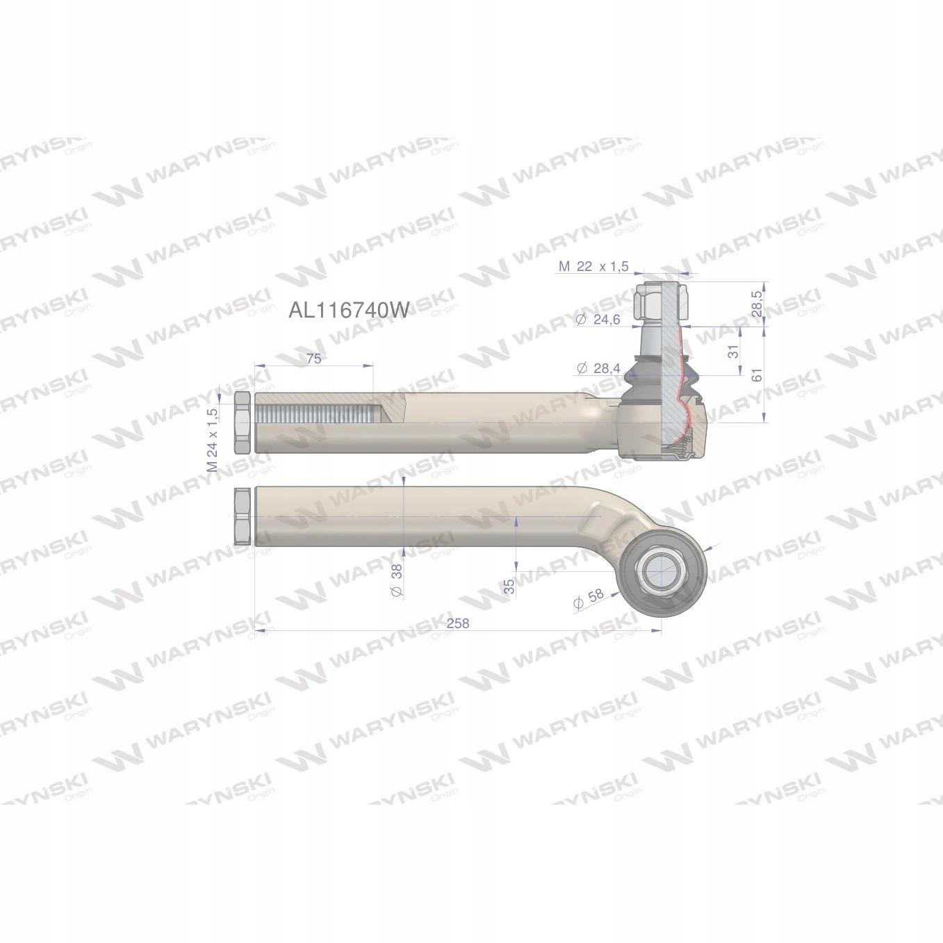 Przegub kierowniczy L 258mm 24 AL116740 WARYŃSKI, AL116740W