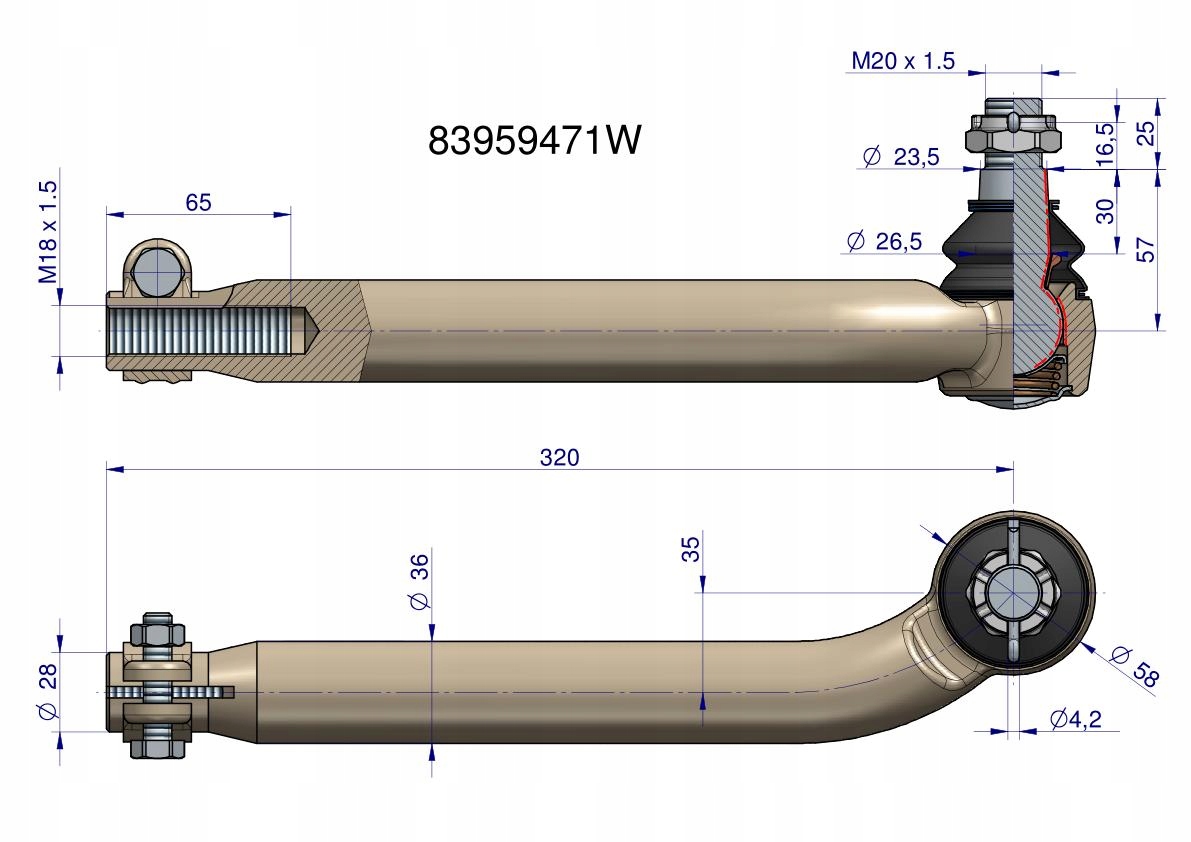 Przegub kierowniczy M18x1.5 83959471 WARYŃSKI