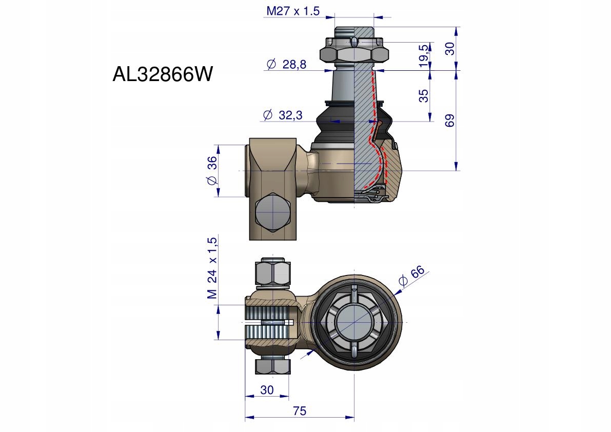 Przegub kierowniczy M24x1.5 AL32866 WARYŃSKI [AL32866W]