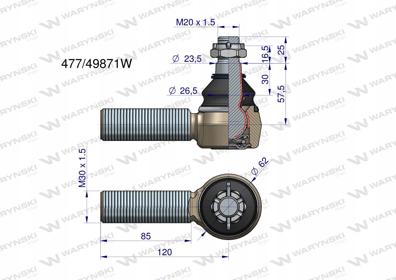 Przegub układu kierowniczego JCB 47749871 Waryński