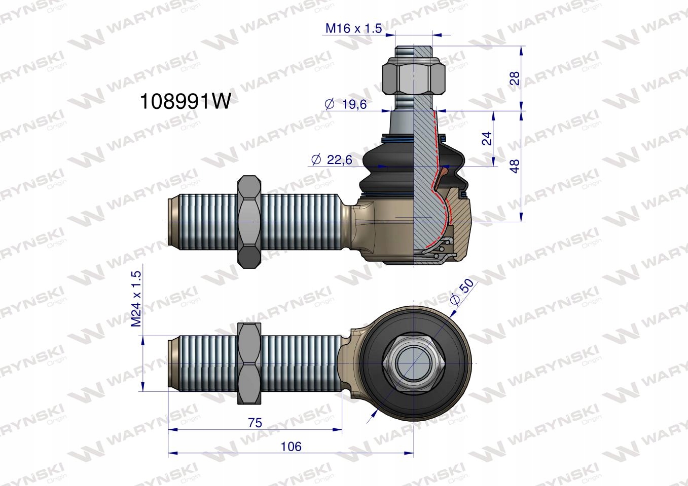 Przeguby WARYŃSKI to jakość pierwszego montażu. Charakteryzują się dłuższą żywotnością dzięki podwyższonej twardości, obniżonej chropowatości elementów współpracujących, dogładzaniu kuli oraz skręcaniu odpowiednią siłą, przypisaną do każdego przegubu. Wyposażone są w specjalną olejoodporną, ozonoodporną oraz odporną na działania promieni UV osłonę gumową.