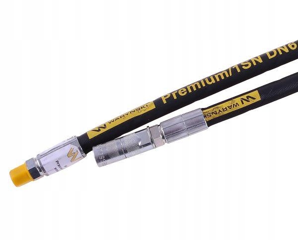 Przewód hydrauliczny Waryński 225 bar (22,5MPa) do smarownicy M10x1. Jest to elastyczny, wielofunkcyjny zakuty wąż do smarowania. W komplecie przykręcona czteroszczękowa końcówka do węża smarownicy - uszczelniona między zakuciem a smarowniczką podkładką metalowo-gumową. Przewód wzmocniony pojedynczym oplotem z drutu stalowego.