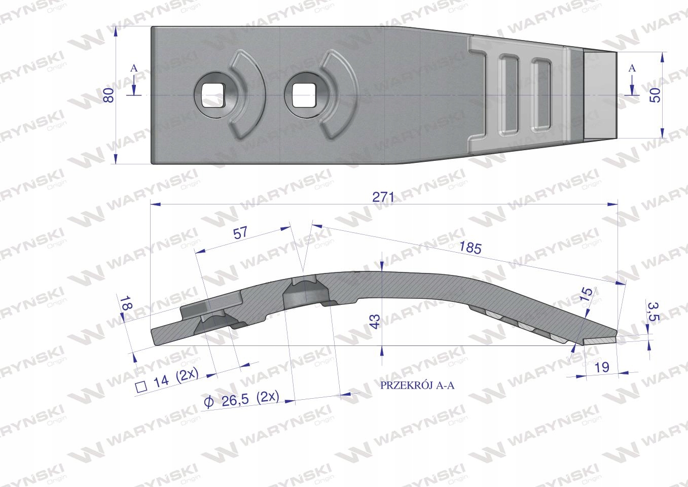 Część wykonana z niezwykle wytrzymałej i odpornej na ścieranie stali borowej wzmocnionej płytkami z węglika wolframu. Połączenie wysokogatunkowej stali borowej, z płytkami z węglika to gwarancja wydłużonego okresu eksploatacji. Produkty Waryński to oszczędność kosztów, wolniejsze zużycie, rzadsza wymiana części roboczych.