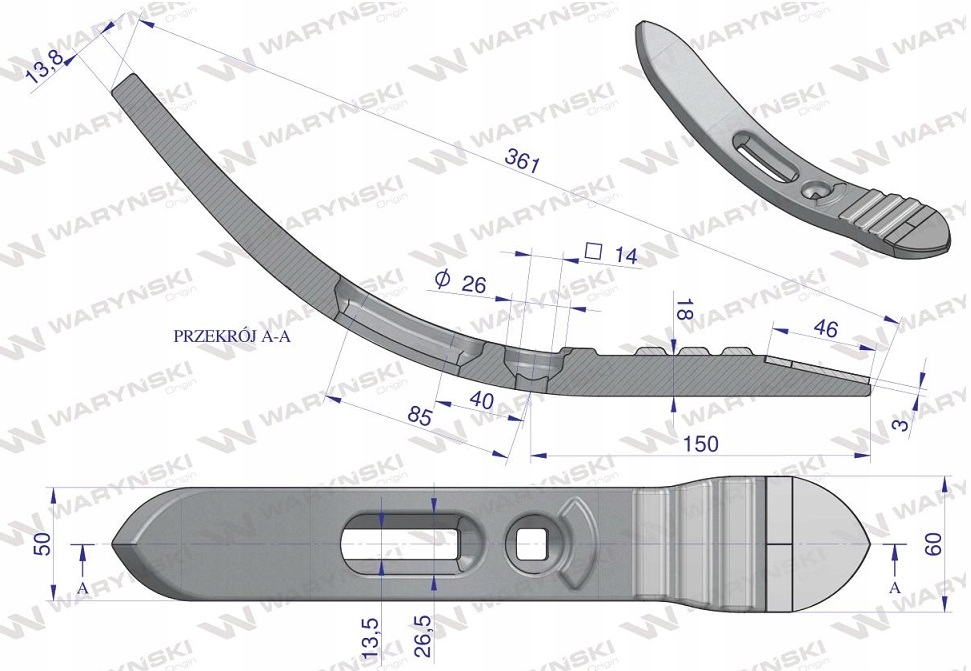 Część wykonana z niezwykle wytrzymałej i odpornej na ścieranie stali borowej wzmocnionej płytkami z węglika wolframu. Połączenie wysokogatunkowej stali borowej, z płytkami z węglika to gwarancja wydłużonego okresu eksploatacji. Produkty Waryński to oszczędność kosztów, wolniejsze zużycie, rzadsza wymiana części roboczych.