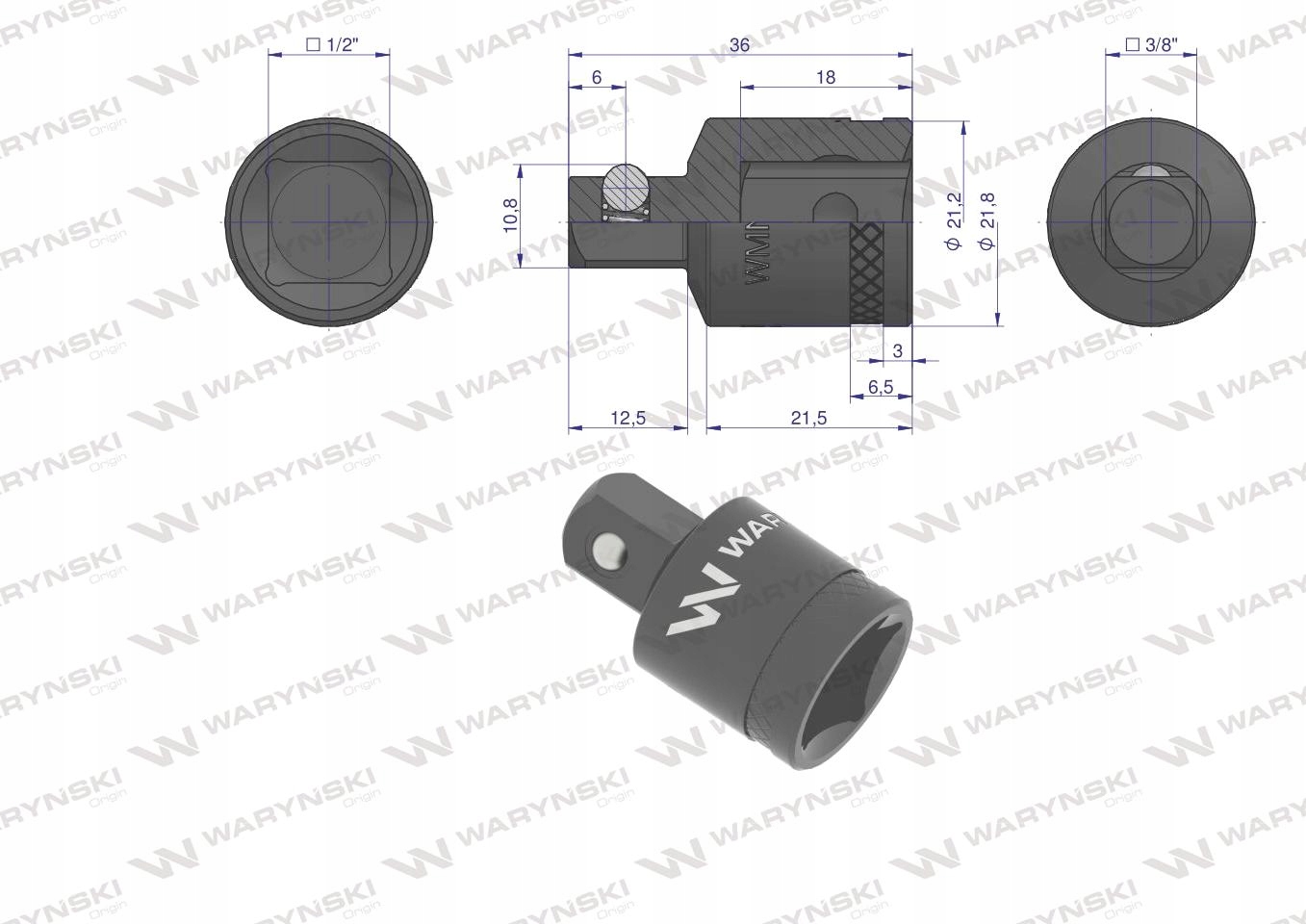 Redukcja do nasadek 1/2calcal-3/8calcal WARYŃSKI, WMN239
