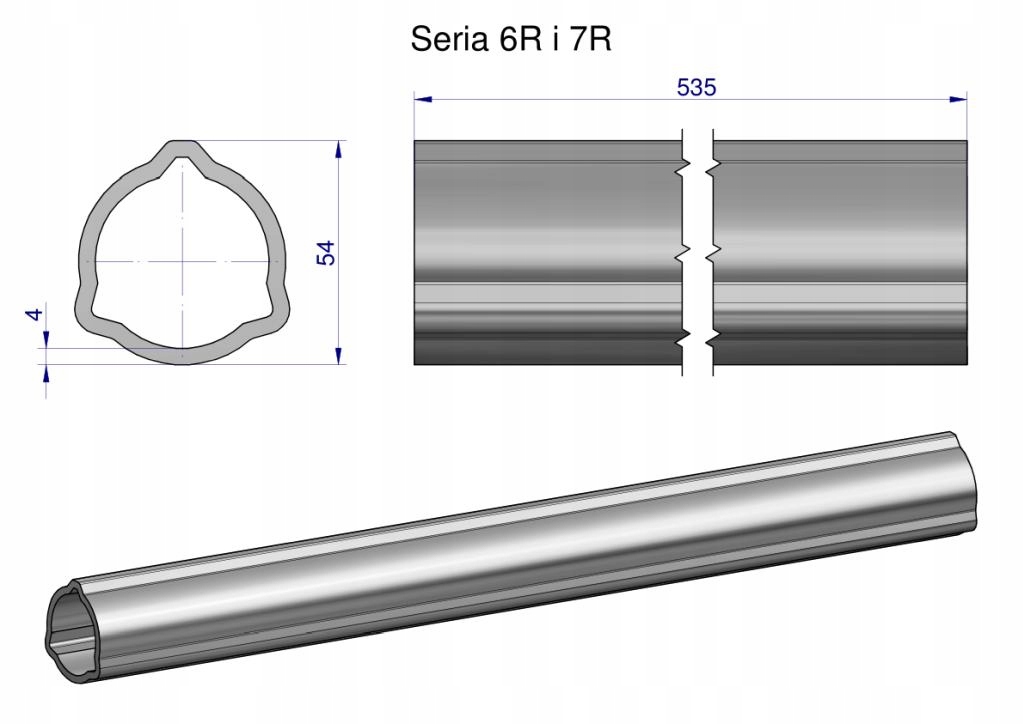 Rura zewnętrzna Seria 6R i 7R do wału 660 wałka WOM 54x4 mm 535 mm WARYŃSKI