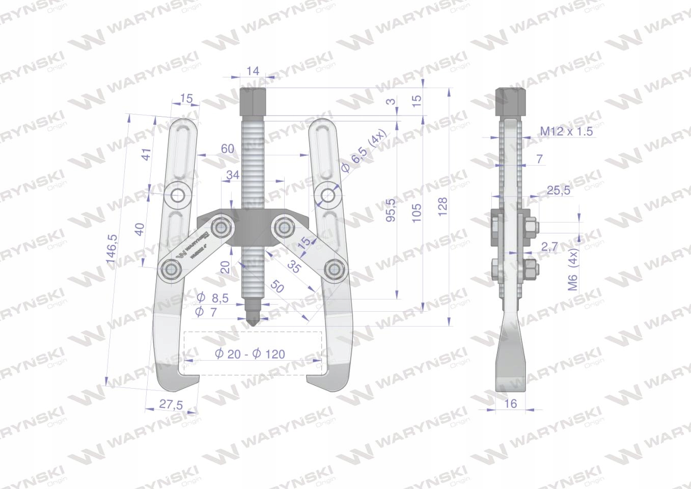 Ściągacz do łożysk dwuramienny 20-120 WARYŃSKI