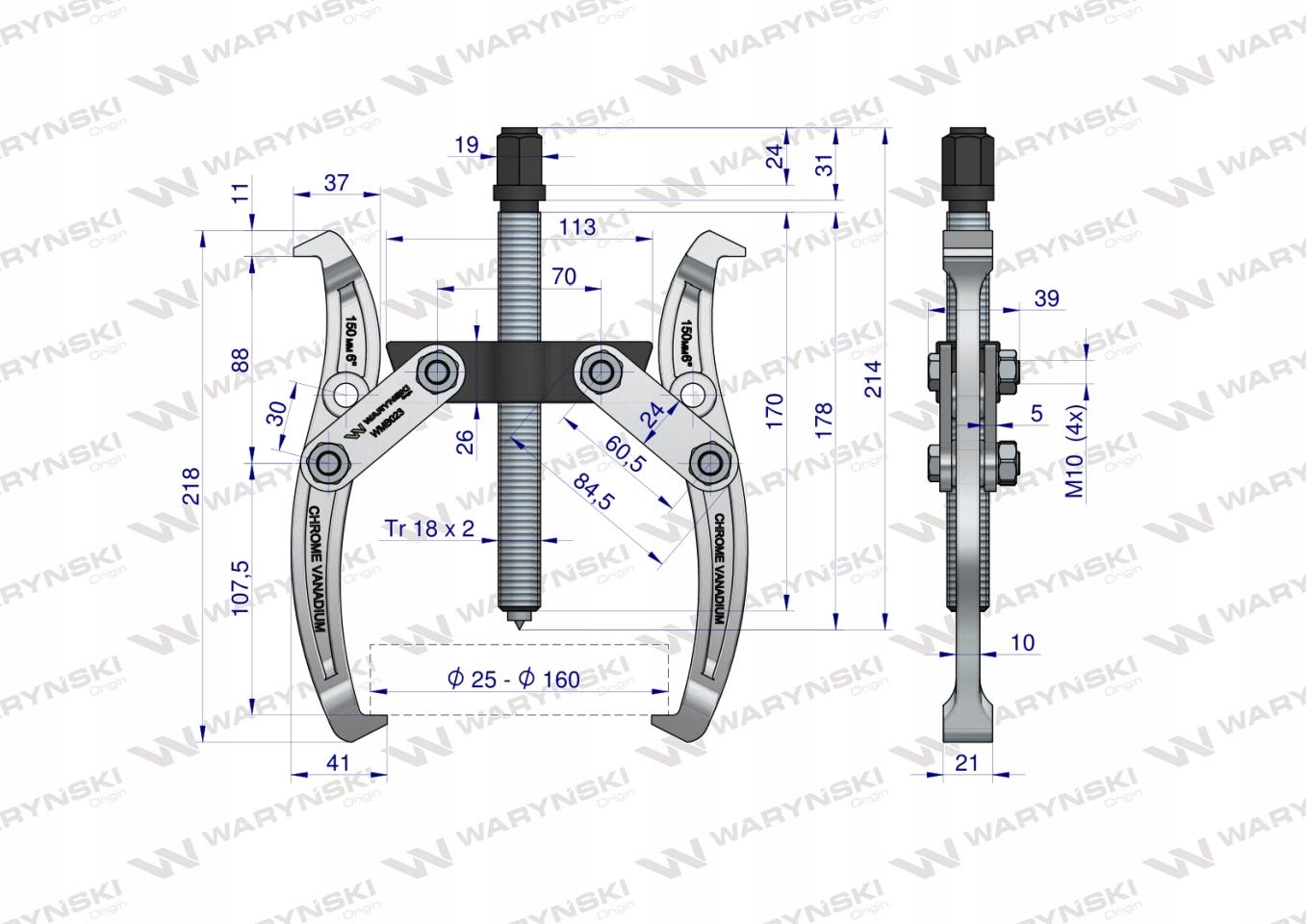 Ściągacz do łożysk dwuramienny 25-160 WARYŃSKI, WMB023