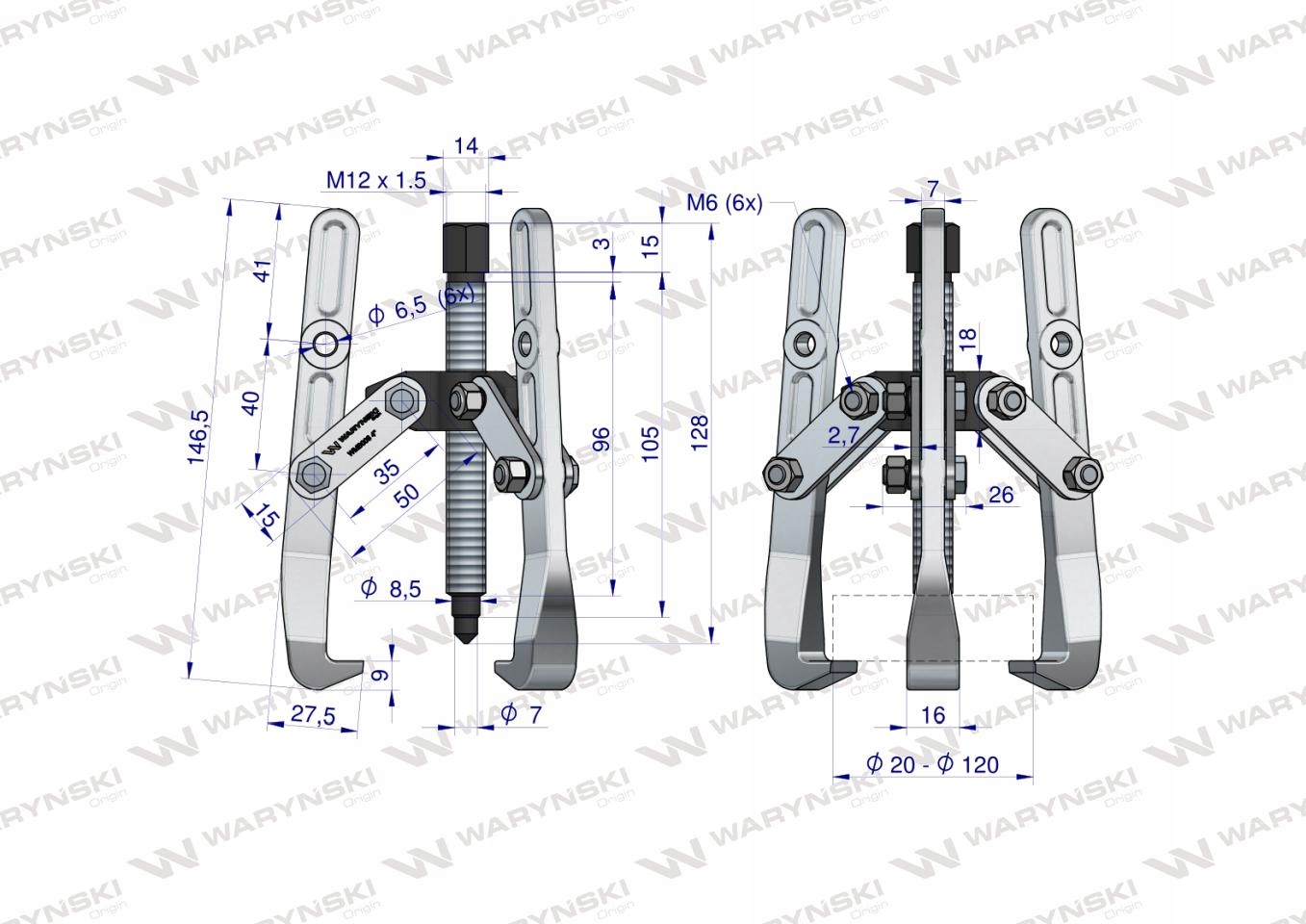 Ściągacz do łożysk trójramienny 20-120 WARYŃSKI