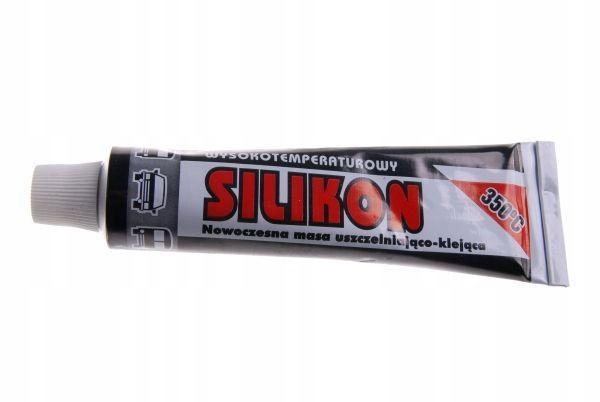 Silikon uszczelniajaco-klejacy 350 *C. 80 ml / Jednoskładnikowa masa silikonowa odporna na temperatury do 350°C o wysokim stopniu elastyczności. Stosowana w miejscach szczególnie narażonych na działanie wysokich temperatur takich jak silniki samochodowe, kominki, urządzenia grzewcze, piece przemysłowe. Zalecana do uszczelniania elementów silnika. Zastępuje uszczelki motoryzacyjne. Odporna na temperatury do +350°C.
