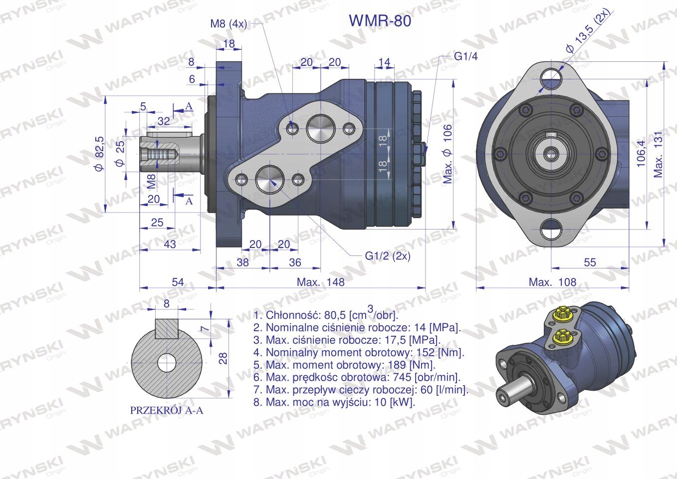 Silniki serii WMR mają lekką kompaktową konstrukcję, wysoki moment obrotowy. Możliwość połączenia równolegle lub szeregowo. W celu osiągnięcia dłuższej żywotności zaleca się, aby optymalne warunki pracy były na poziomie 1/3 do 2/3 parametrów maksymalnych.