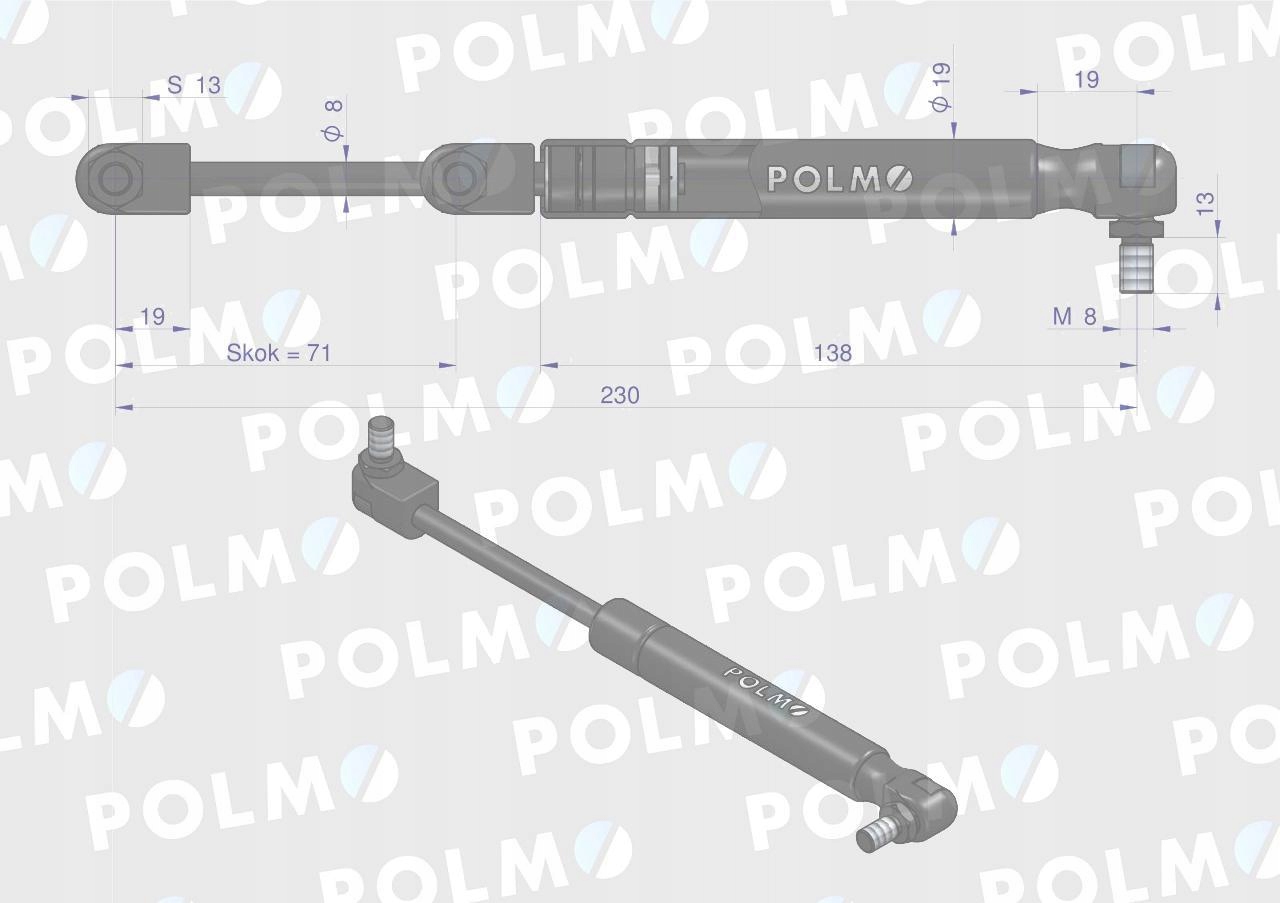 Siłownik drzwi 230mm MASSEY FERGUSON POLMO