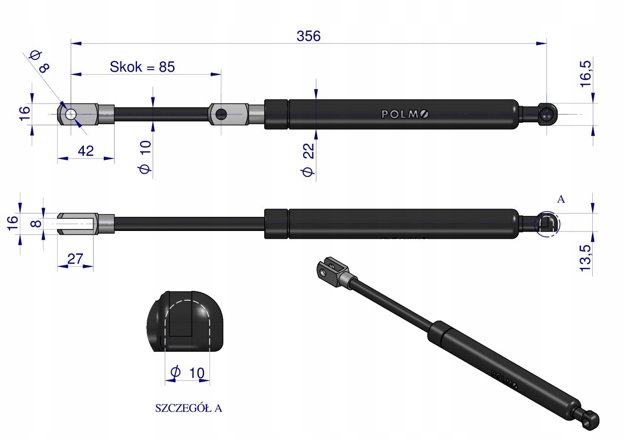 Siłownik podnoszenia maski John Deere AL77767 POLMO, AL77767P