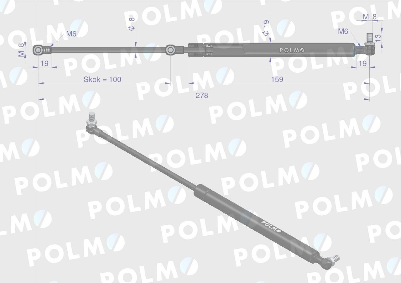 Siłownik szyberdachu L max. 278mm 0308250111P MTZ POLMO [0308250111P]