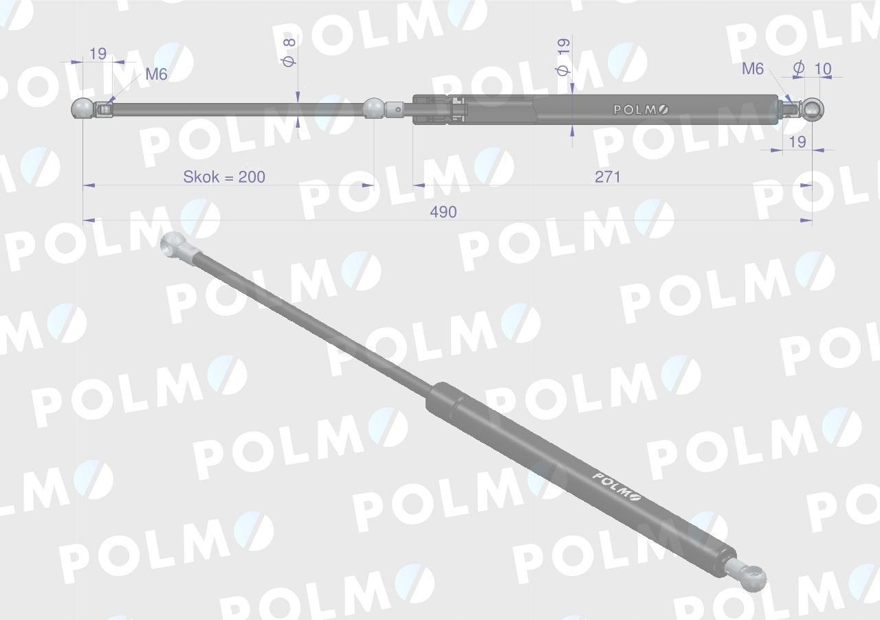 Siłownik szyby przedniej L max. 490mm CASE POLMO
