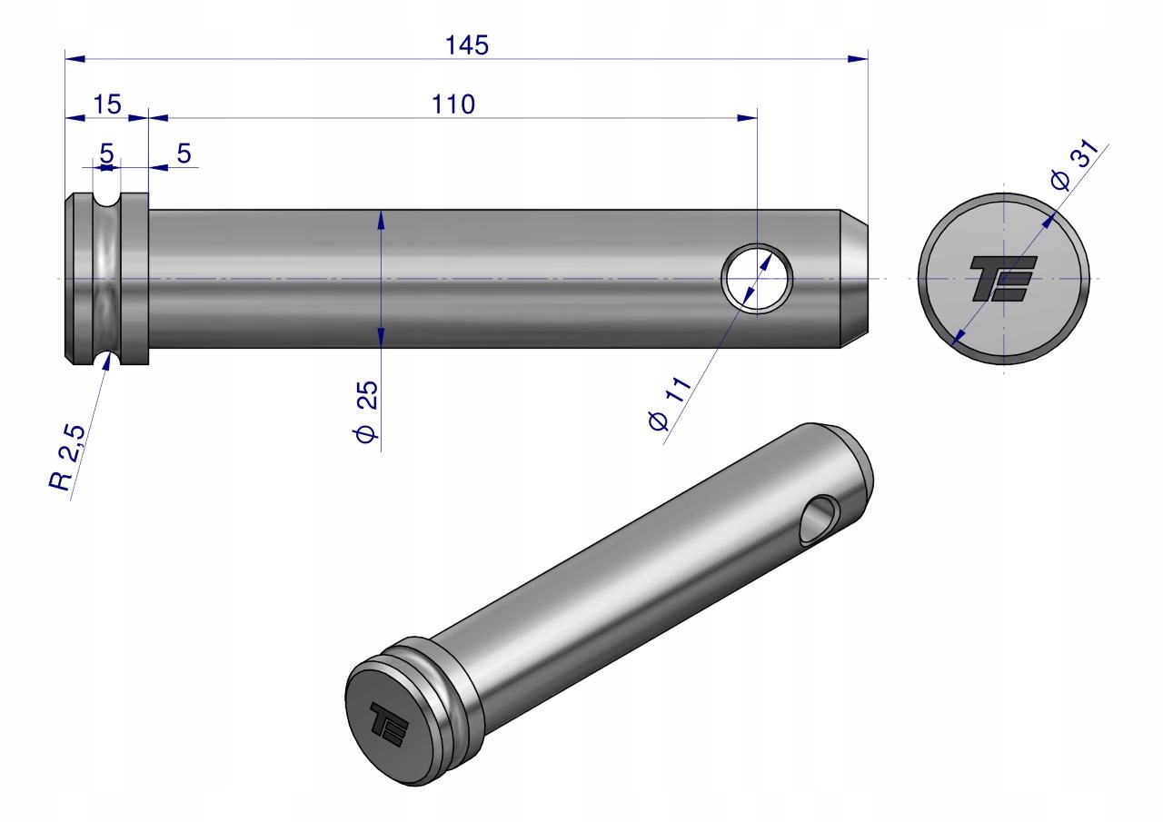Sworzeń łącznika górnego 25x110x145 TEGER