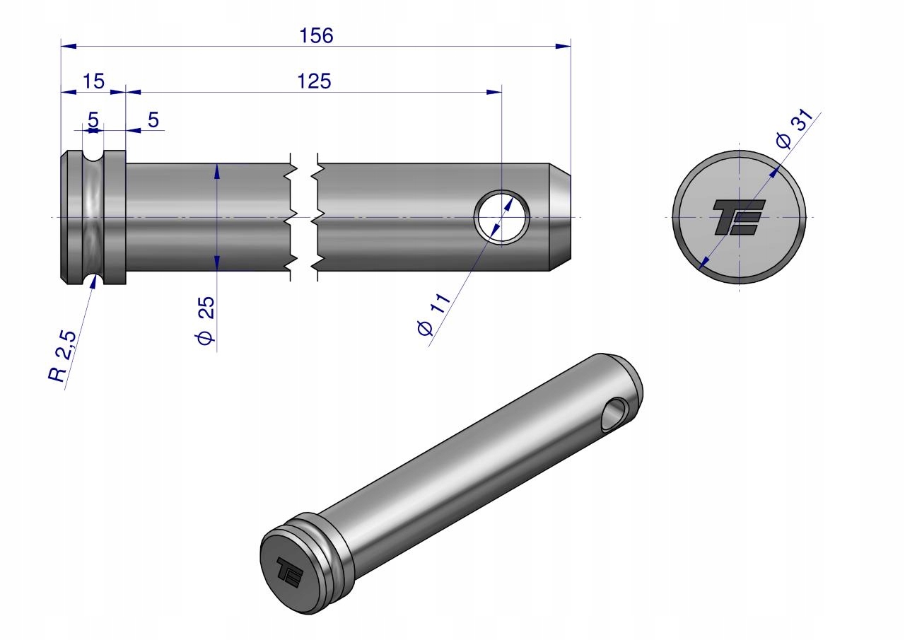 Sworzeń łącznika górnego 25x125x156 TEGER