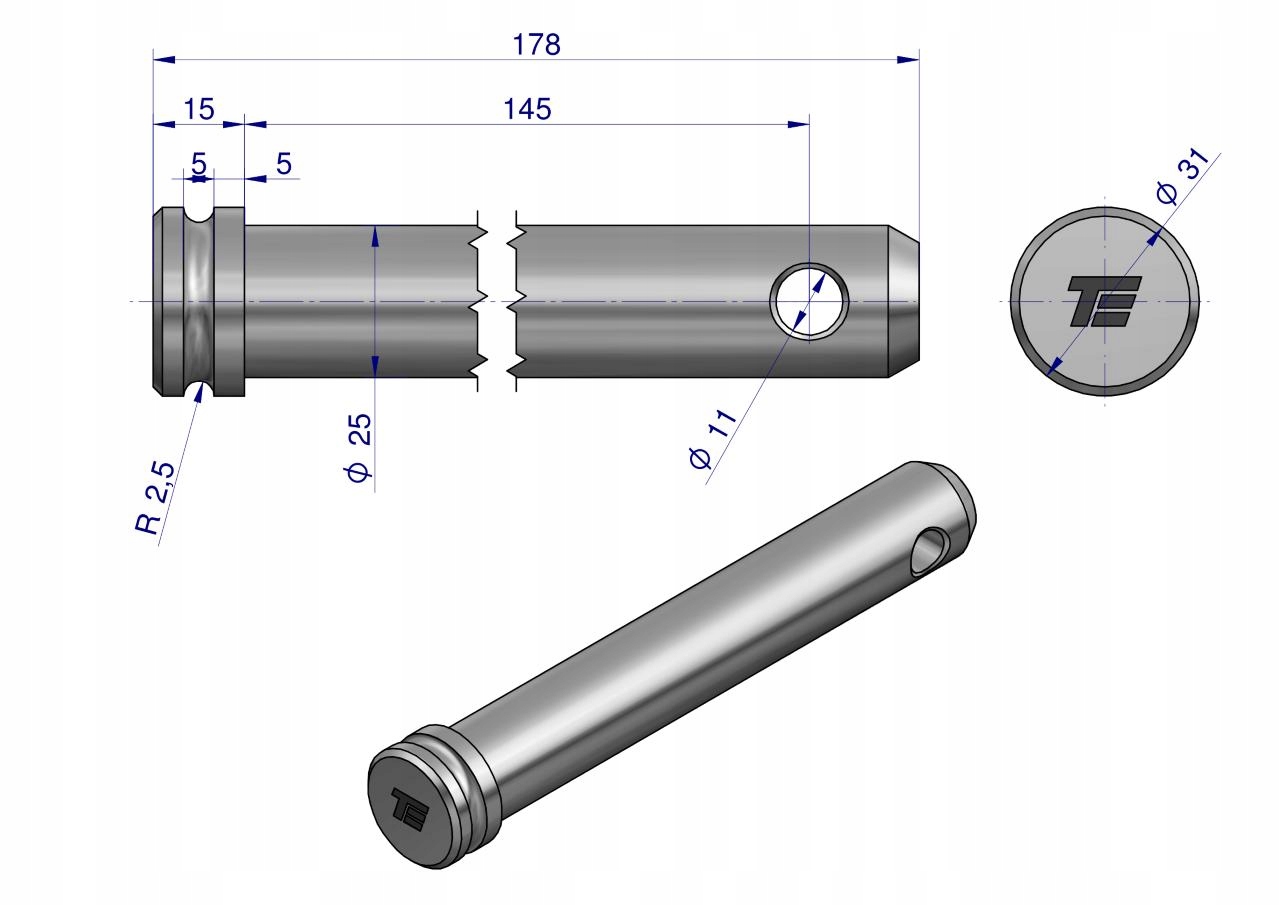 Sworzeń łącznika górnego 25x145x178 TEGER