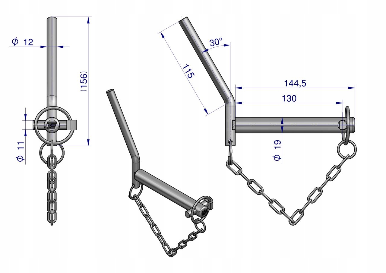 Sworzeń zaczepu z wygiętym uchwytem 19x130 TEGER