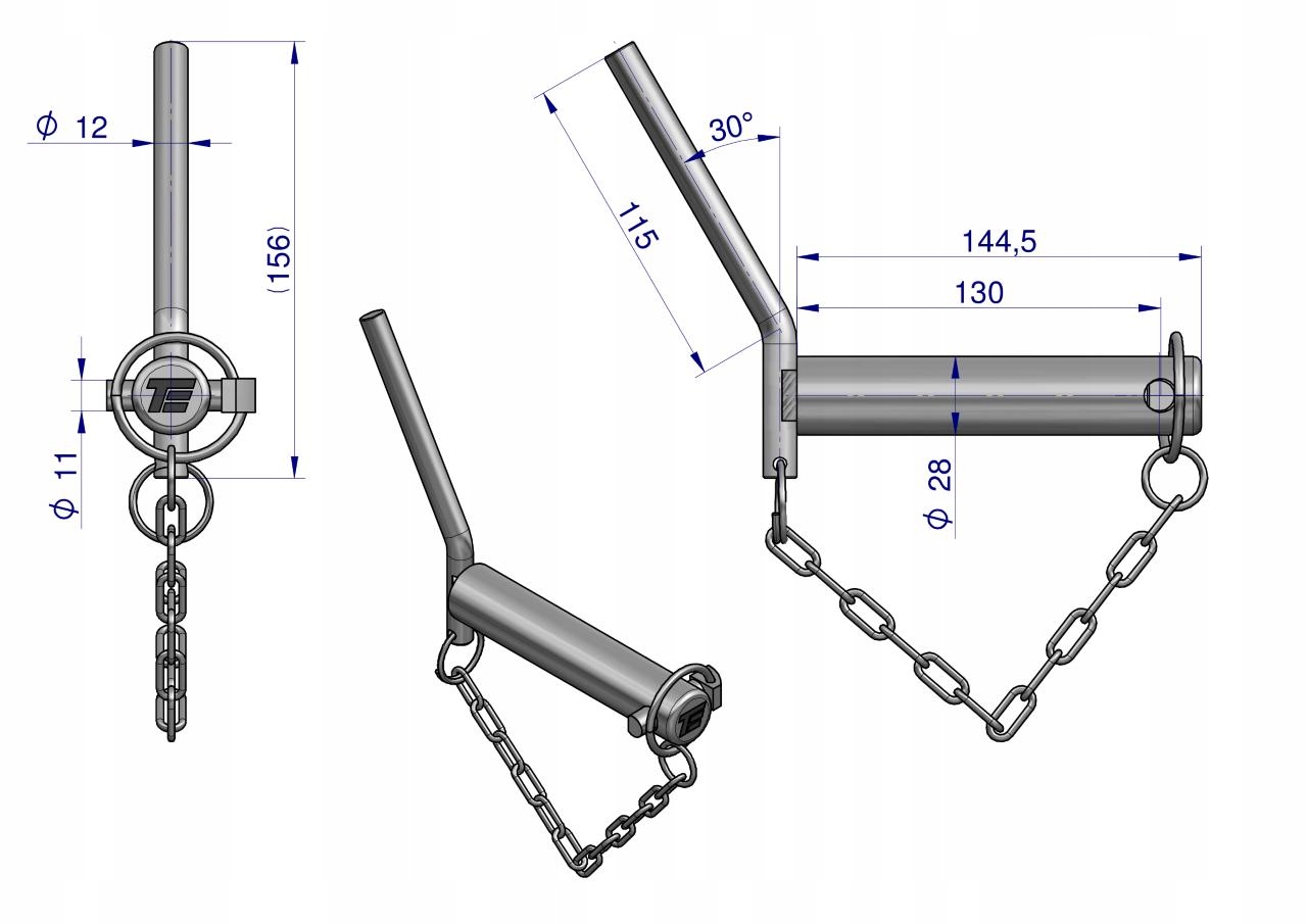 Sworzeń zaczepu z wygiętym uchwytem 28x130 TEGER