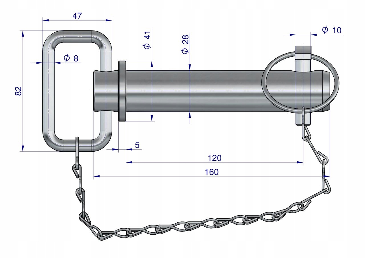 Sworzeń zaczepu z zawleczką i łańcuchem 28x120x160 TEGER