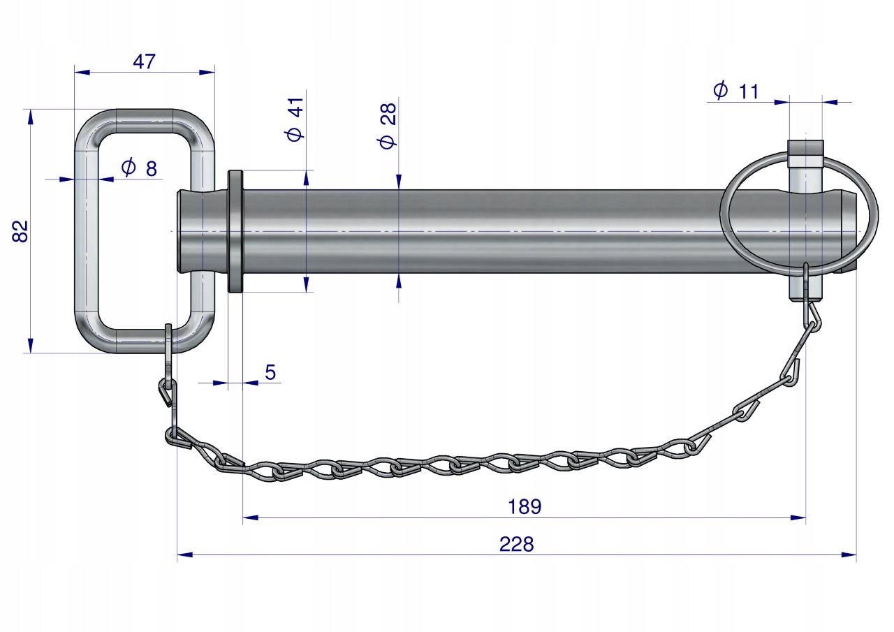 Sworzeń zaczepu z zawleczką i łańcuchem 28x189x228 TEGER Sworznie w marce Teger posiadają trwałe oznakowanie są utwardzane cieplnie. Wykazują wyższą twardość i powtarzalność . Produkty marki Teger znajdują zastosowanie w przemyśle, rolnictwie, ogrodnictwie, budownictwie i motoryzacji.