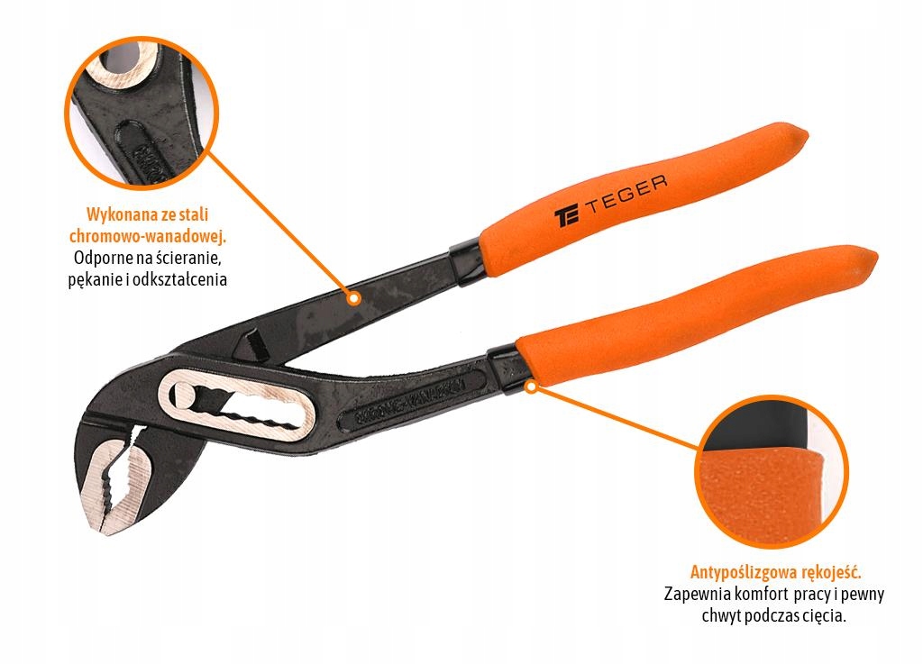 Szczypce nastawne do rur 300 mm / TEGER przeznaczone do odkręcania, dokręcania i przytrzymywania np. rur, kształtek, nakrętek oraz śrub w pracach warsztatowych, hydraulicznych i budowlanych.