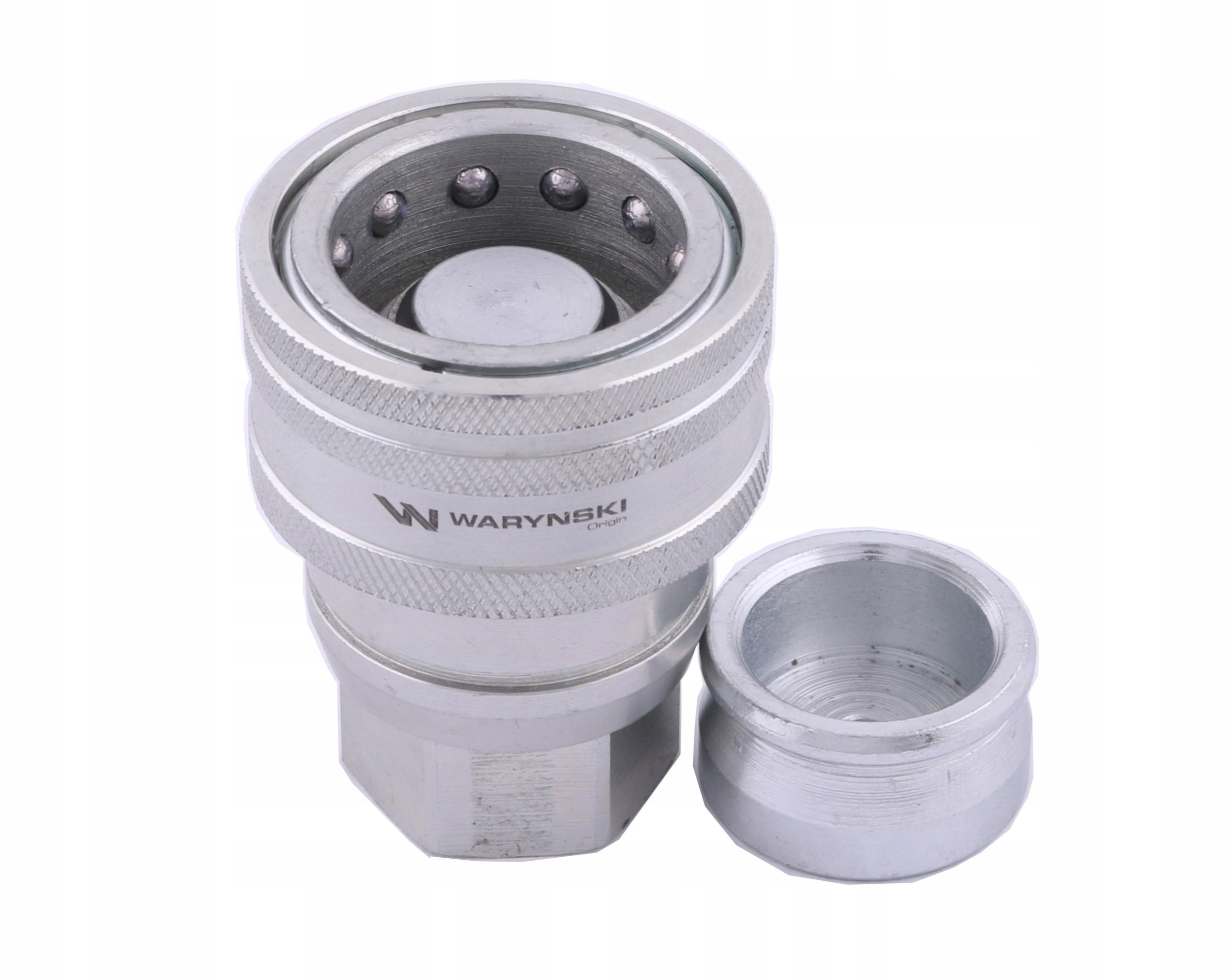 Szybkozłącze hydrauliczne hamulcowe gniazdo G3/8"BSP gwint wewnętrzny Waryński. Zaprojektowane są zgodnie z wymogami wymiarowymi i jakościowymi, które określają szczegółowo charakterystykę pracy i wymiary. Gniazda mają w komplecie dodatkowe zabezpieczenie/korek. Szybkozłącza hamulcowe gwarantują szczelne połączenie w układzie hydraulicznym.