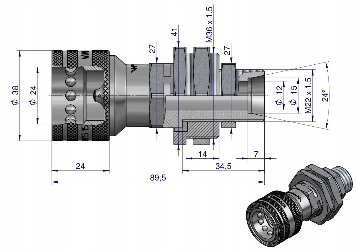Gwint: Zewnętrzny M22x1,5 (długi z przeciwnakrętką)