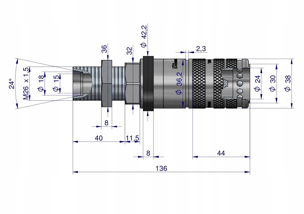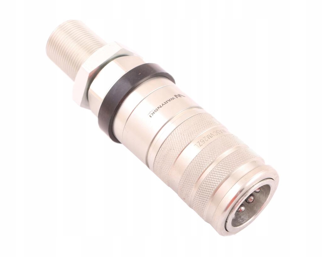 Szybkozłącze hydrauliczne zrywalne seria WIA3CV (3CFPV) gniazdo long M26x1.5 gwint zewnętrzny EURO PUSH-PULL (ISO 7241-A) Waryński. Najpopularniejsze szybkozłącza hydrauliczne o bardzo szerokim spektrum zastosowań w najnowszych ciągnikach rolniczych. Ten rodzaj wykonania gniazda szybkozłącza zabezpiecza przed pęknięciem/zerwaniem przewodu hydraulicznego i utratą oleju hydraulicznego w przypadku jego niezamierzonego naciągnięcia - np. odjazd ciągnika bez odczepienia hydrauliki z podłączonej maszyny (montaż gniazda na sztywno bez dodatkowych uchwytów). Szybkozłącza zaprojektowane są zgodnie z wymogami wymiarowymi i jakościowymi normy ISO 7241 Seria A, która określa szczegółowo charakterystykę i wymiary. Zamienne z szybkozłączami innych renomowanych producentów takich jak: Parker, Faster, Stucchi, DNP i innych.