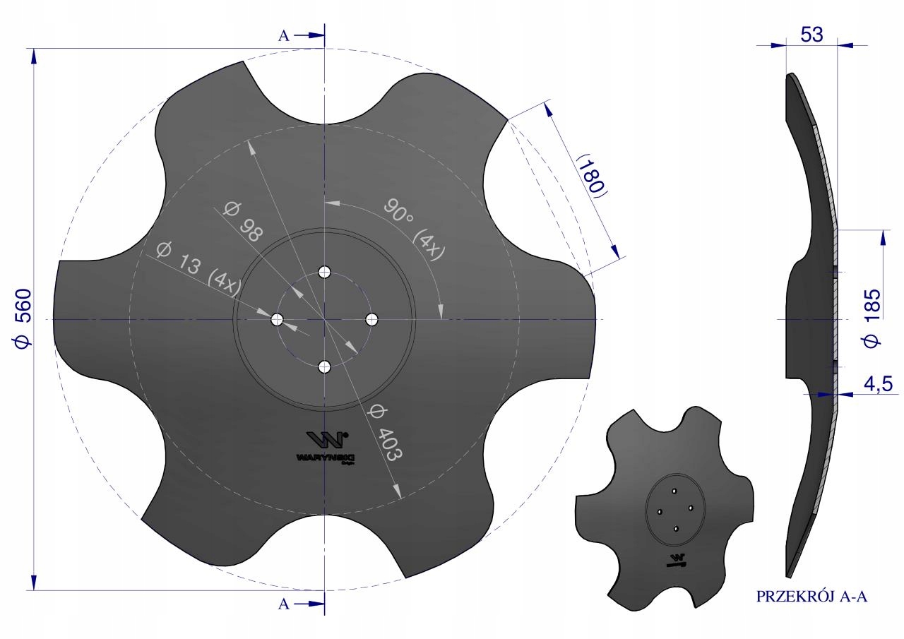 Talerz skrajny lewy fi 560 4/98 grubość 4.5 mm stal borowa WARYŃSKI, W-95602245Talerz skrajny lewy fi 560 4/98 grubość 4.5 mm stal borowa WARYŃSKITalerz skrajny lewy fi 560 4/98 grubość 4.5 mm stal borowa WARYŃSKI