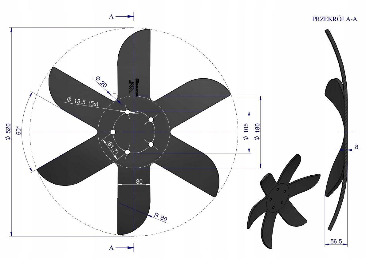 Talerz skrajny lewy Z-6 fi 520 5/105mm grubość 8mm Horsch WARYŃSKI 00311080, W-5193520/5/105LTalerz skrajny lewy Z-6 fi 520 5/105mm grubość 8mm Horsch WARYŃSKI 00311080Talerz skrajny lewy Z-6 fi 520 5/105mm grubość 8mm Horsch WARYŃSKI 00311080