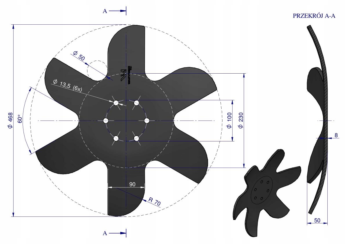 Strona główna » Części maszyn rolniczych » Talerzówka » Talerz skrajny lewy Z6 fi460 6/100mm grubość 8mm KM060251 Bednar WARYŃSKI