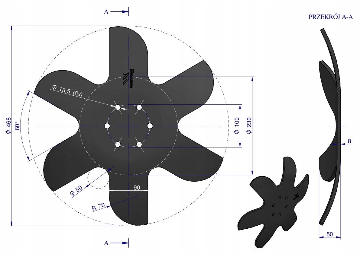 Talerz skrajny prawy Z6 fi460 6/100mm grubość 8mm KM060250 Bednar WARYŃSKI