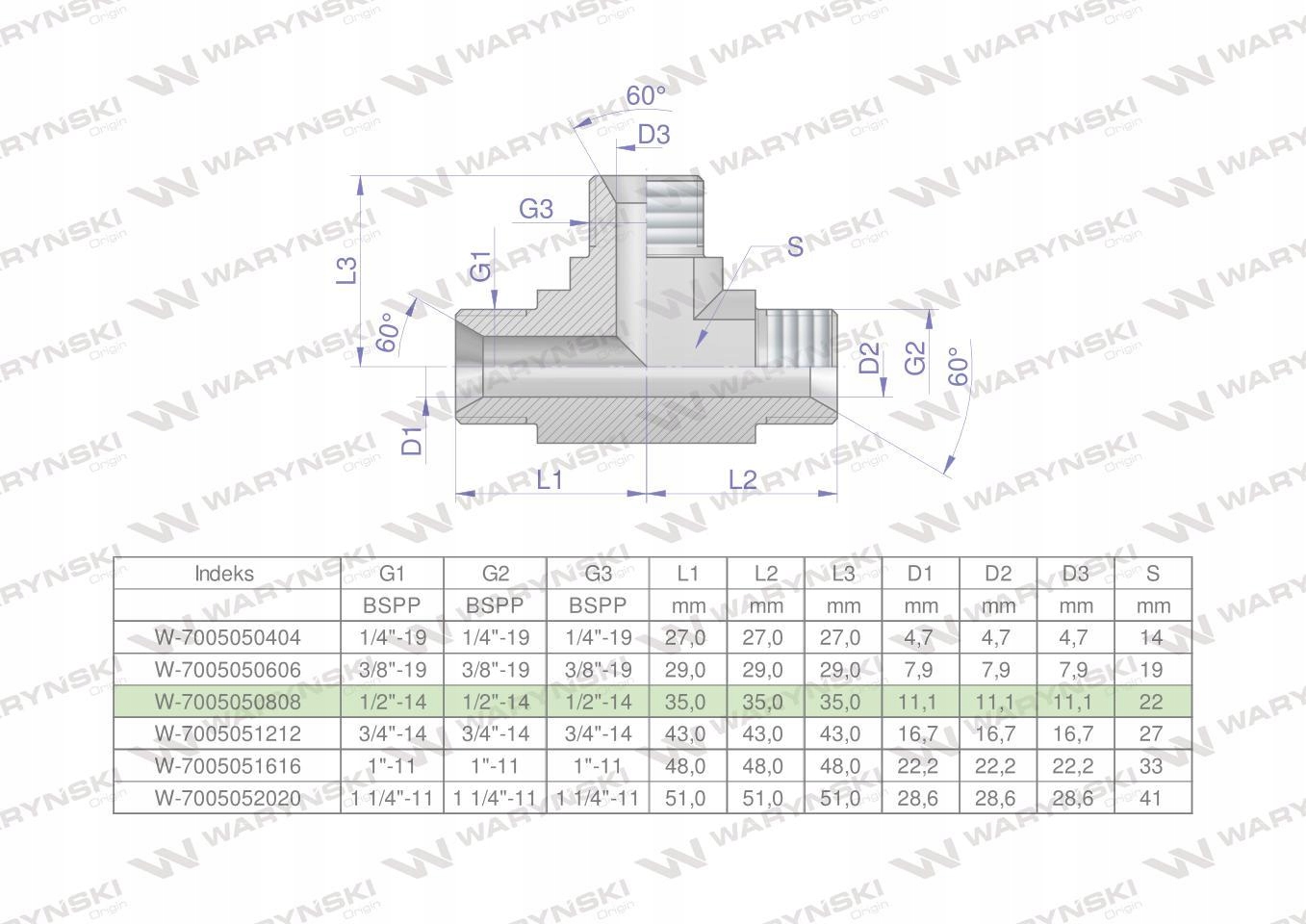 Trójnik hydrauliczny calowy BBB 1/2" BSP (XT) Waryński. Elementy złączne zostały zaprojektowane i wykonane zgodnie z obowiązującymi normami, które szczegółowo opisują wymagania jakościowe i wymiarowe. Są kompatybilne z elementami złącznymi innych renomowach producentów hydrauliki siłowej.