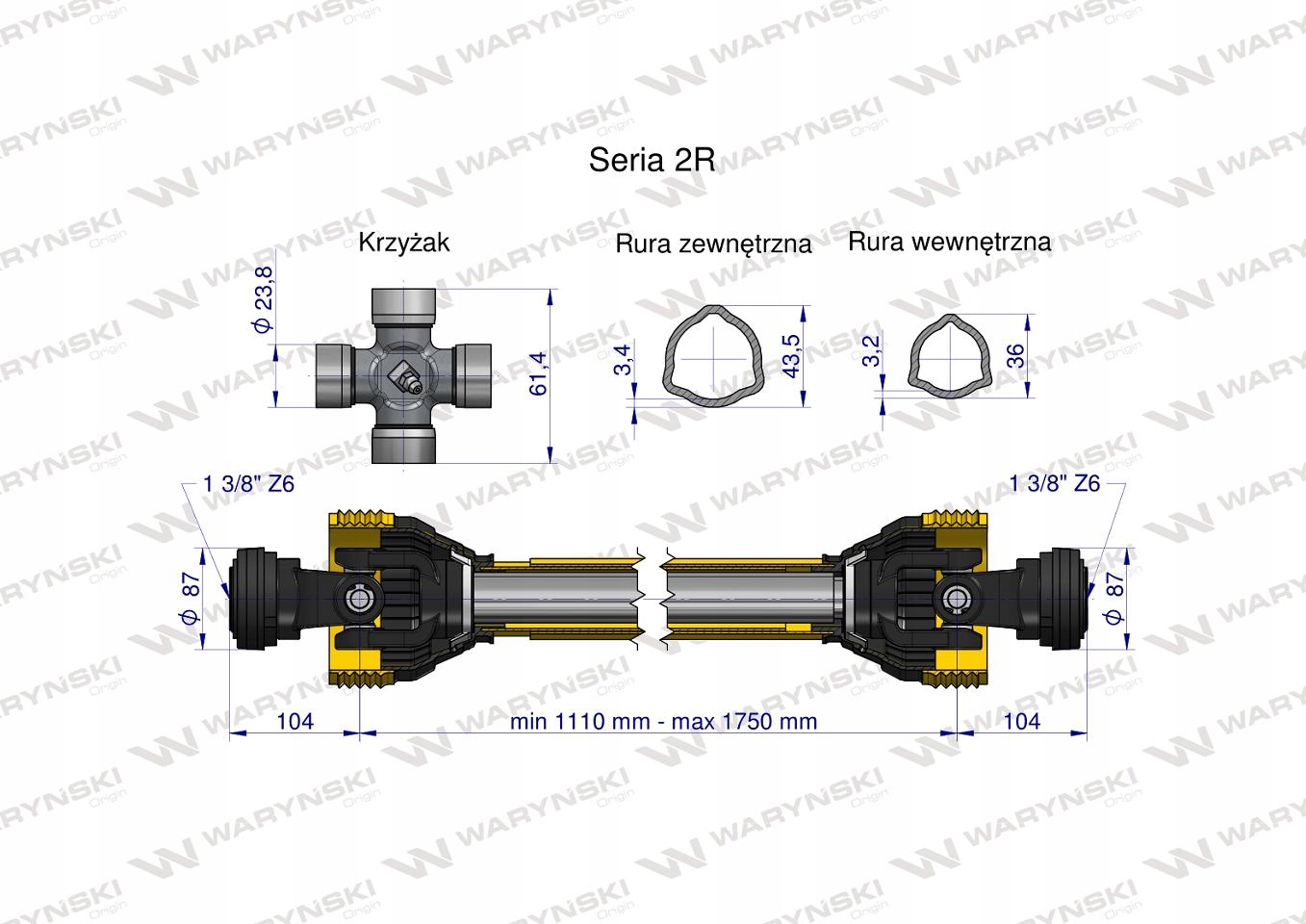 Wał wałek WOM 1110-1750mm 270Nm CE 2R WARYŃSKI, W2B1B11110