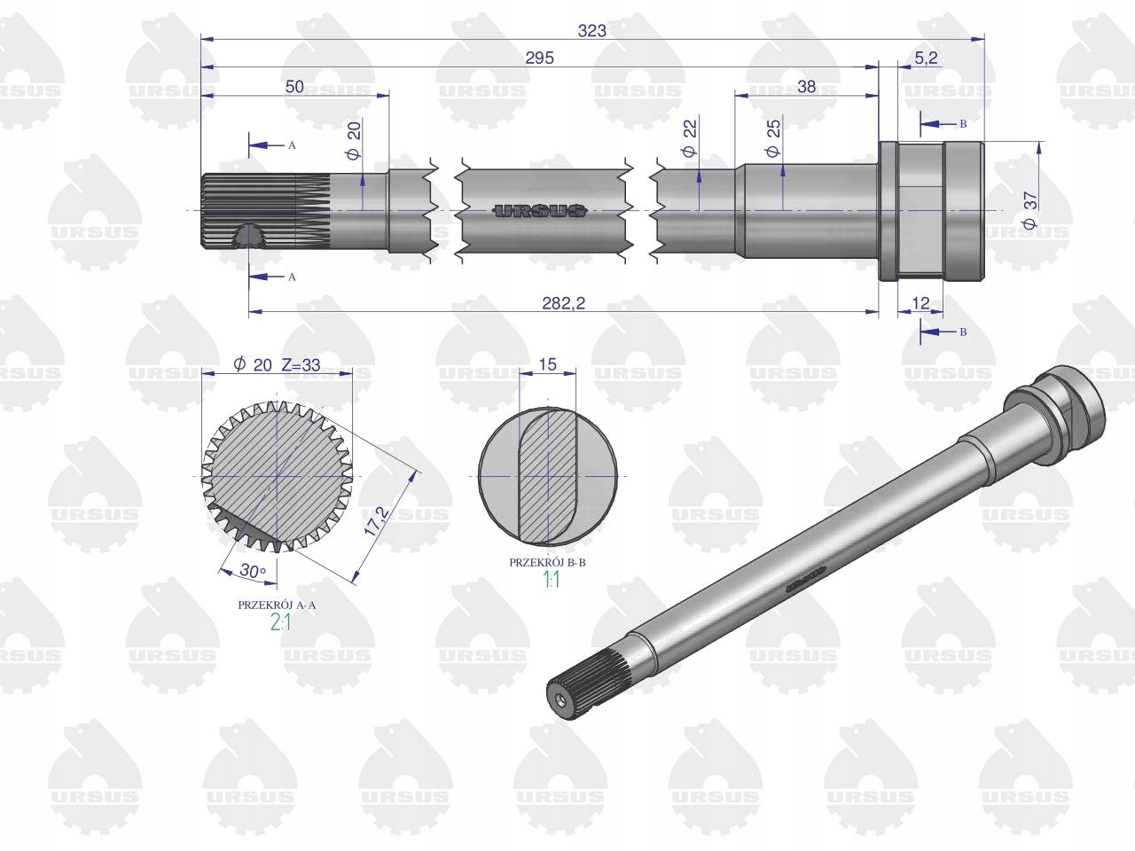 Koła zębate oraz wałki wykonane są ze stali konstrukcyjnej przeznaczonej do obróbki cieplnej lub cieplno-chemicznej. Kucie poszczególnych dodatkowo poprawia ich właściwości wytrzymałościowe. Dzięki zastosowaniu procesu wiórkowania (szlifowania zgrubnego) współpracujące ze sobą oryginalne czesci Ursus są znacznie lepiej spasowanie, co wpływa na cichszą pracę oraz znacznie dłuższy czas eksploatacji.