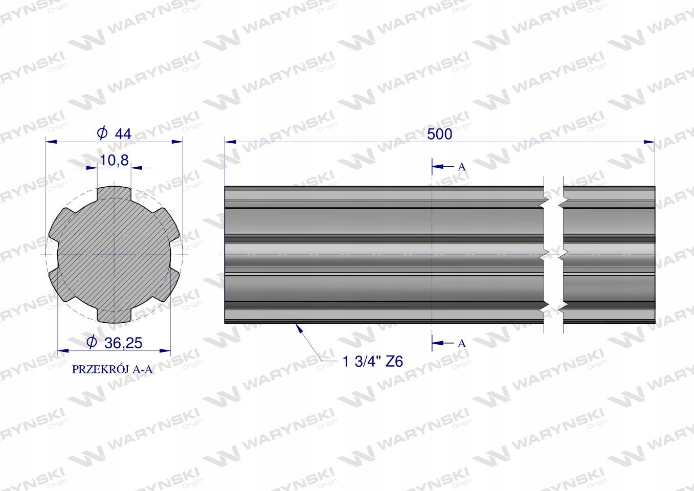 Wałek WOM frezowany całościowo 500mm Z6 - 1 3/4 WARYŃSKI, W-3450500