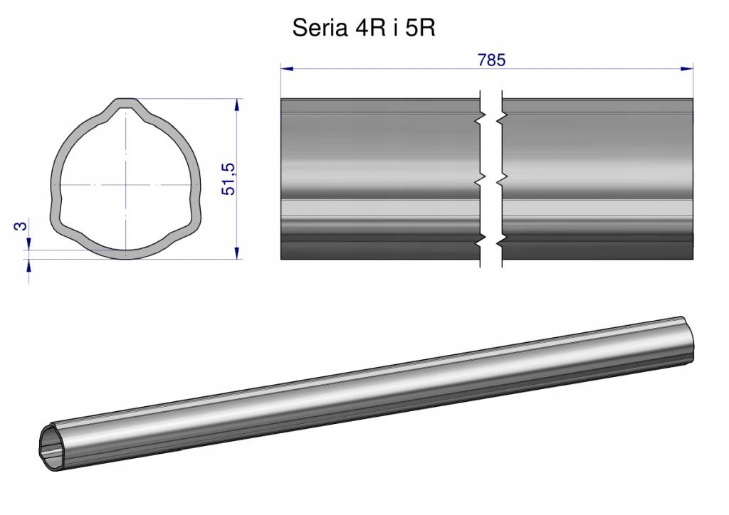 Rura zewnętrzna Seria 4R i 5R do wału 910 wałka WOM 51.5x3mm 785mm WARYŃSKI